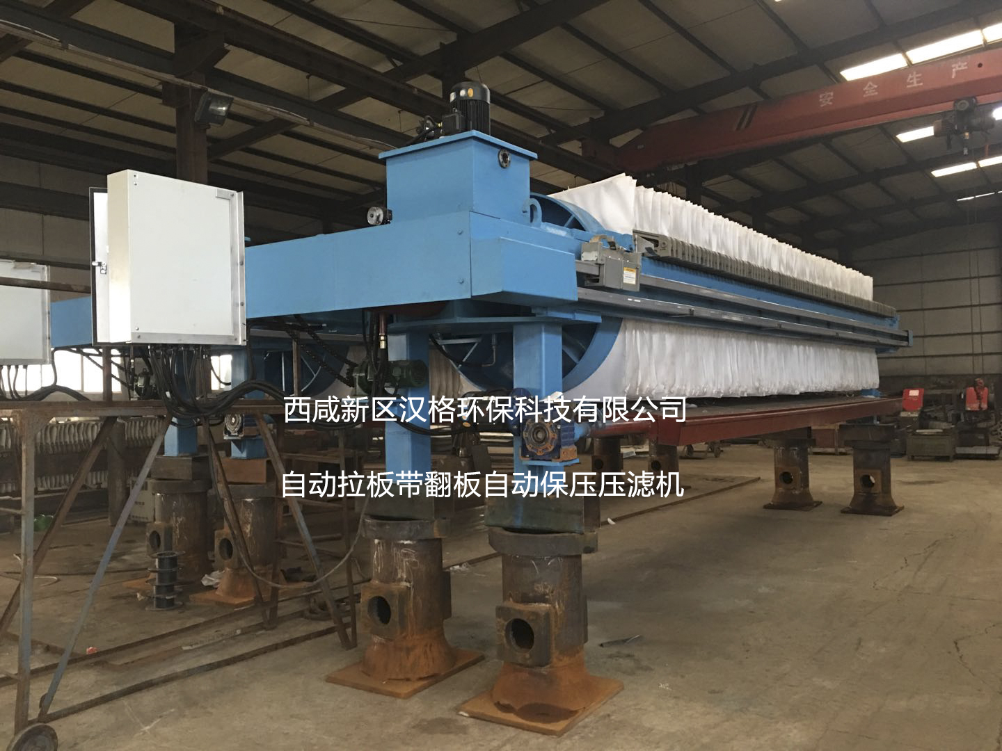 陜西華星佳洋裝備制造有限公司-自動(dòng)拉板帶翻板自動(dòng)保壓壓濾機(jī)