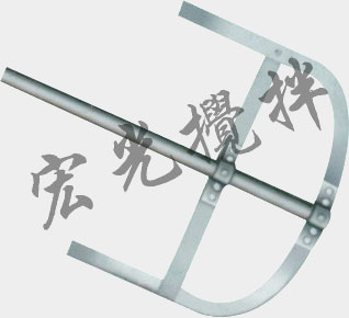 槳葉外緣形狀與攪拌槽內(nèi)壁要一致(圖5),其間僅有小的間隙,可清除附在槽壁上的粘性反應產(chǎn)物或堆積于槽底的固體物,保持好的傳熱效果。槳葉外緣的圓周速度為 0.5~1.5m/s,可用于攪拌粘度高達 200Pa·s的牛頓型流體。