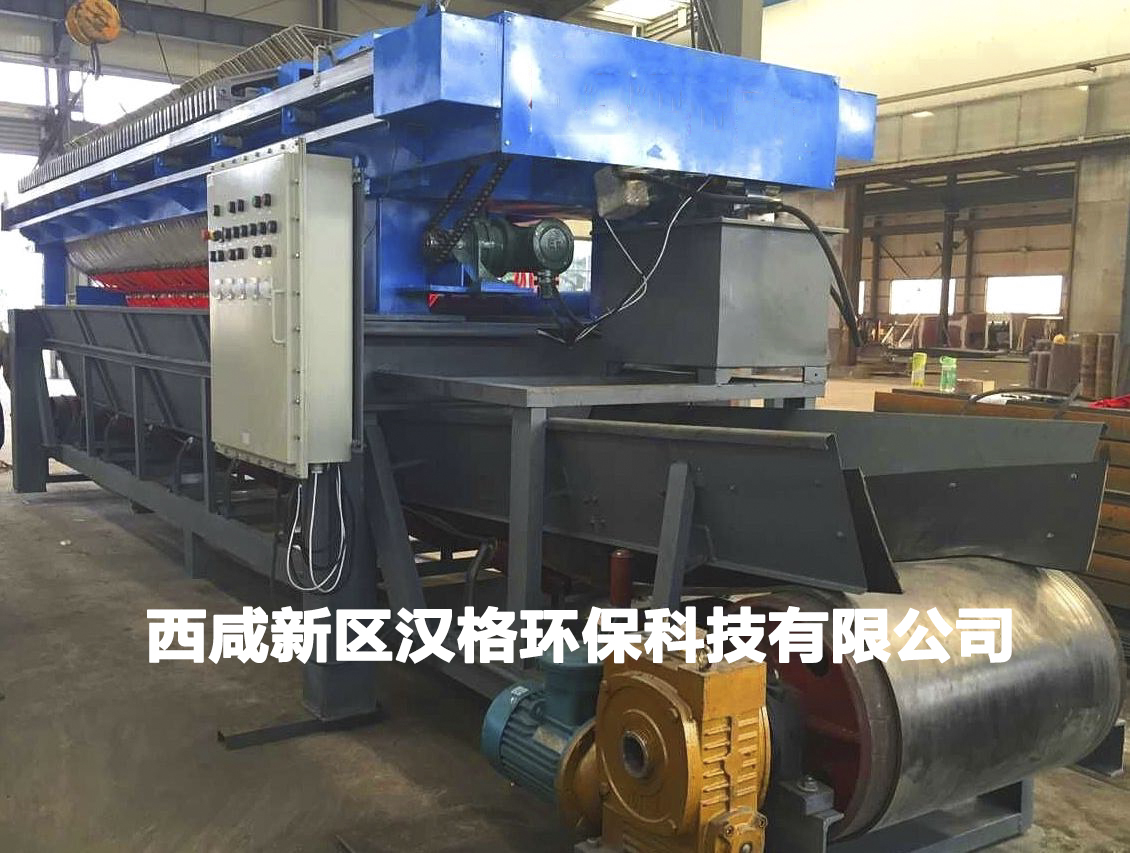 人字形連桿機構(gòu)安裝在濾板的上部和中部,濾布通過連桿,彈簧,鉤子等。 連桿機構(gòu)的類型是連接的,當彈簧拉動材料時,當卸下濾板時,濾布在人字形機構(gòu)中振動,這有助于泥餅從濾板上剝離。 整個過程無需外力或手動現(xiàn)場操作。 由于固體顆粒尺寸小,鋼煙灰廢水粘度高,泥餅不易剝落。 這種靜脈曲張機制完全適用于鋼煙灰廢水的過濾。
