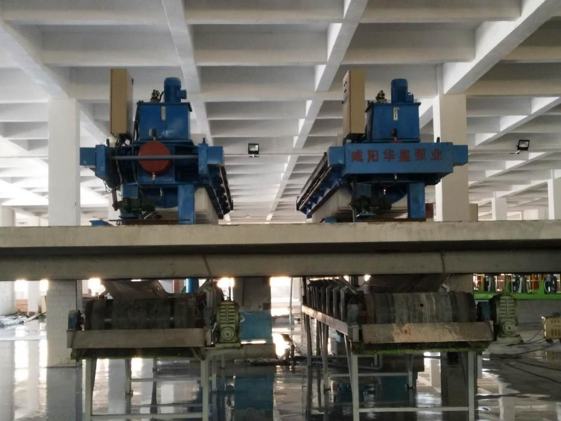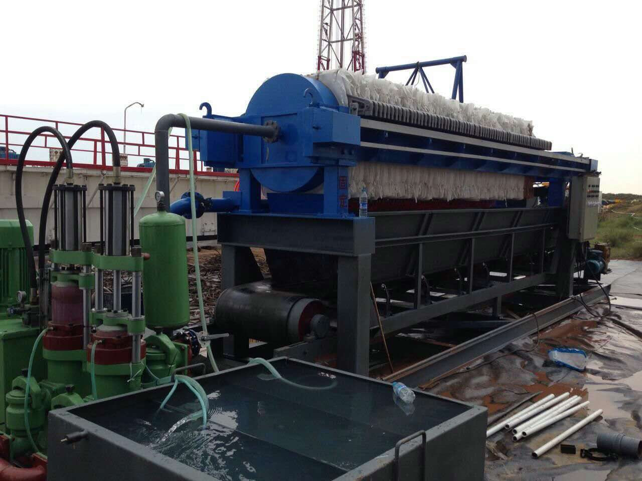 西安壓濾機現(xiàn)場使用圖片  圖中綠色的泵為我公司生產(chǎn)的壓濾機進料泵